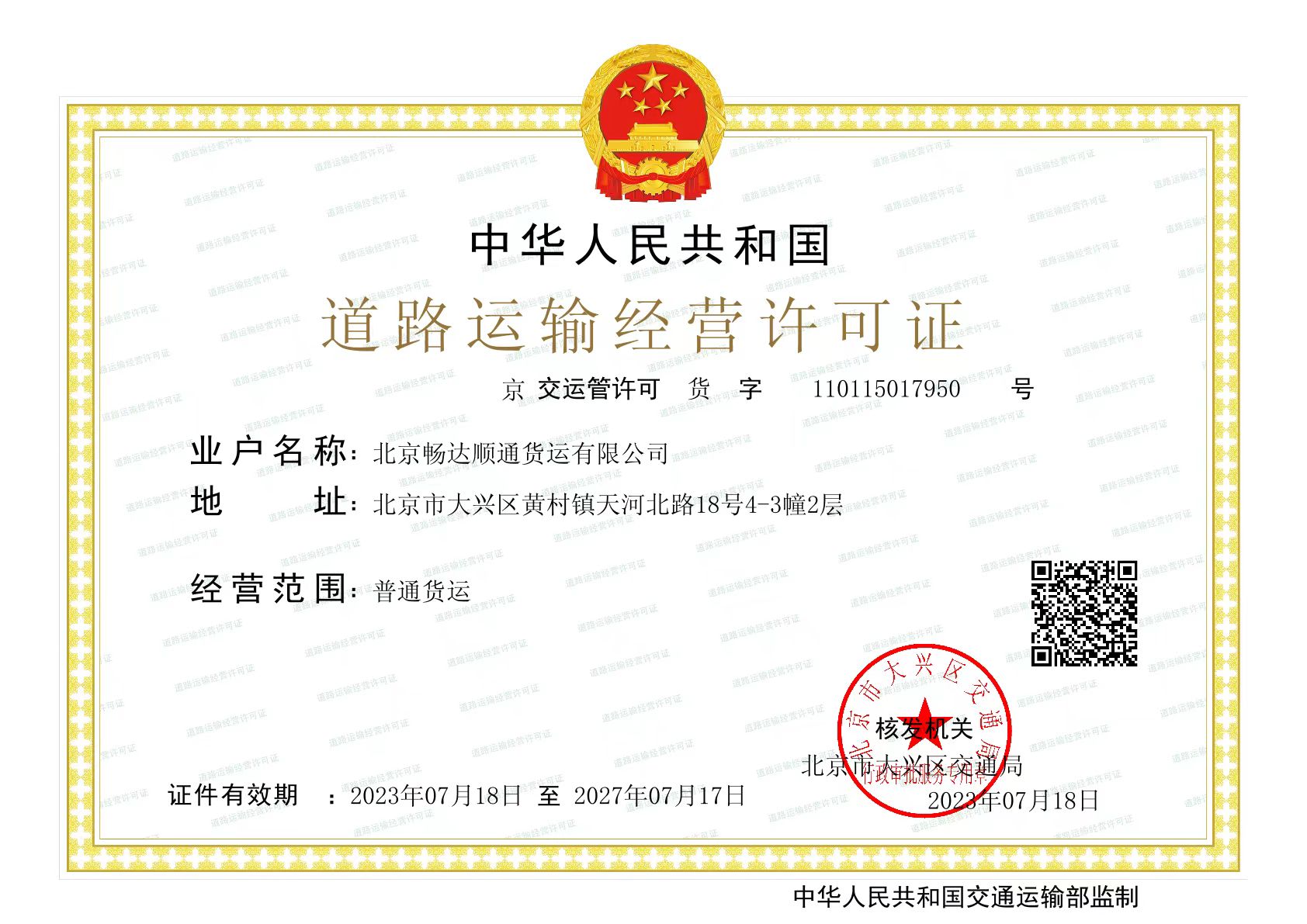 北京暢達(dá)順通貨運(yùn)有限公司,是經(jīng)北京市工商行政管理局、北京市交通委員會(huì)批準(zhǔn)合法的國內(nèi)貨運(yùn)物流公司。